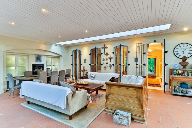 This unique property features 4 receptions and an open study area, making it ideal for those seeking space and functionality. The stunning covered patio adjacent to the pool provides a perfect setting for relaxation. The well-equipped SMEG kitchen, library/study, and wine storage area further elevate the appeal of this home.