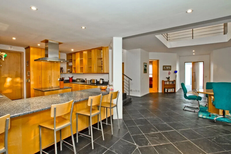 Entrance opens into a large open plan living of kitchen, lounge and dining room, all opening to the garden and onto the covered patio and pool. The large double garage has access into the house. There is a private study for working from home plus an en-suite guest room or family room. Live, entertain and work from the stunning self-contained studio apartment upstairs.
